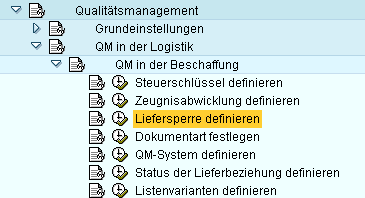 Im Customizing zum Thema Lieferant finden Sie die vorgegebenen Sperrfunktionen im Bereich QM in der Beschaffung: