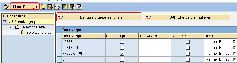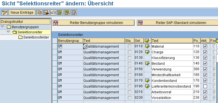 Auf das Anlegen der Benutzergruppe QM wird verzichtet. Die erforderlichen Eingaben zum Anlegen sind in Abb. 3 ersichtlich. Nach dem Markieren der Zeile QM und einem Doppelklick auf Selektionsreiter können die Sichten definiert werden (Abb. 4): | |||||||