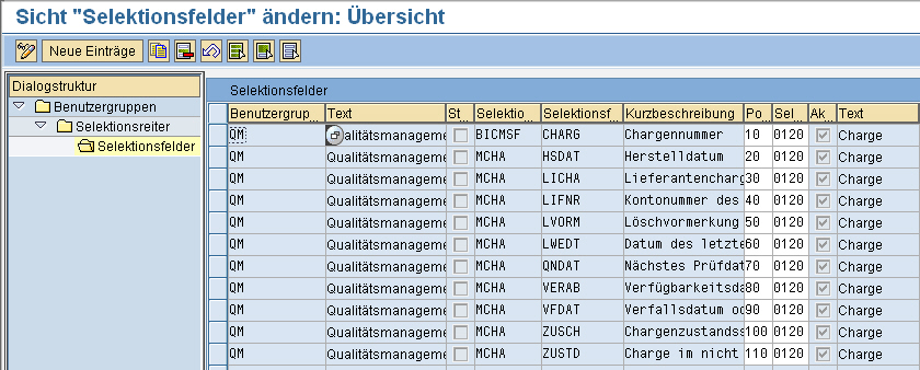 Batch Information Cockpit – Chargencockpit, Customizing | |||||||||||||