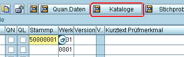 Auf der Merkmalsebene beschreiben Sie, welche Merkmale auf Basis der Prüfspezifikation zum Material arbeitsplatzbezogen notwendig sind. Dies können Sie direkt in der tabellarischen Übersicht machen oder über die objektbezogenen Schaltflächen über der Tabelle (Bild 1). Der Pflegeaufwand ist hier von den Voreinstellungen in den Stammprüfmerkmalen abhängig. Natürlich können Sie auch Prüfpläne ohne die Verwendung von Stammprüfmerkmalen pflegen, dazu schauen Sie bitte hier.