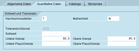 Nach Einstellung der Steuerkennzeichen, wird Ihnen das Fenster zur Eingabe der Quantitativen Daten dargestellt (Bild 10). Da im Bild 8 die Verwendung eines unteren und oberen Grenzwerts festgelegt wurde, sind die Felder Untere Grenze und Obere Grenze Felder die eine Eingabe erfordern (Mussfelder). |