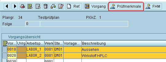 Eine aussagekräftige Beschreibung ist sicher hilfreich, hat aber keine steuernde Wirkung. Nachdem Sie die nötigen Vorgangsdaten eingegeben haben, markieren Sie die Vorgangszeilen und gehen über die Schaltfläche Prüfmerkmale auf die Merkmalsebene (Bild 4): | ||||||||||||||||||