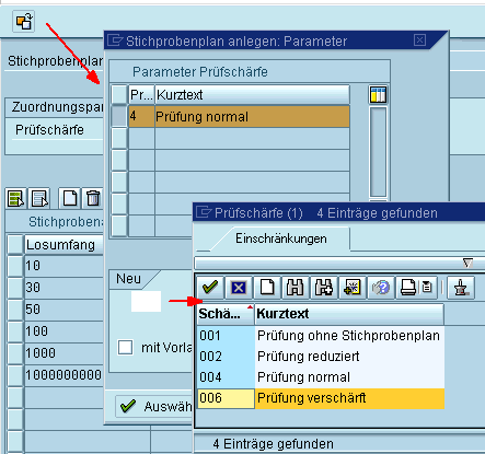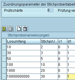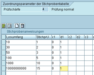 Annahmezahl c1 0 und die Rückweisezahl d1 1 sein soll. Dies bedeutet, dass z. B. aus 49 Stück drei Stichproben entnommen werden und das bei einer Grenzwertverletzung (Rückweisezahl) in die durch die Dynamisierungsregel vorgegebene Prüfschärfe gewechselt wird. Die Angabe der Annahmezahl ist optional.