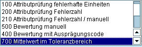 Als Bewertungsmodus wird hier Mittelwert im Toleranzbereich gewählt, da dieses Verfahren für Prüfmerkmale mit einem Toleranzwert (unterer oder oberer Grenzwert) oder einem Toleranzbereich verwendet werden soll. |