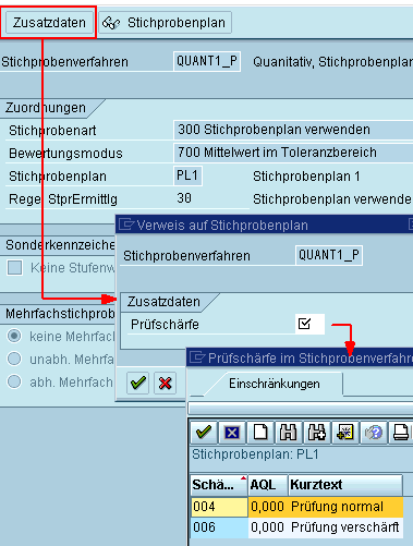 angelegt werden. Diese Stichprobenverfahren dienen dazu, den Anwender während der Prüfergebniserfassung von manuellen Prüfergebnisbewertung zu befreien. Im 2. Szenario wird als Variante die Verküpfung mit einem Stichprobenplan gezeigt. |